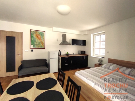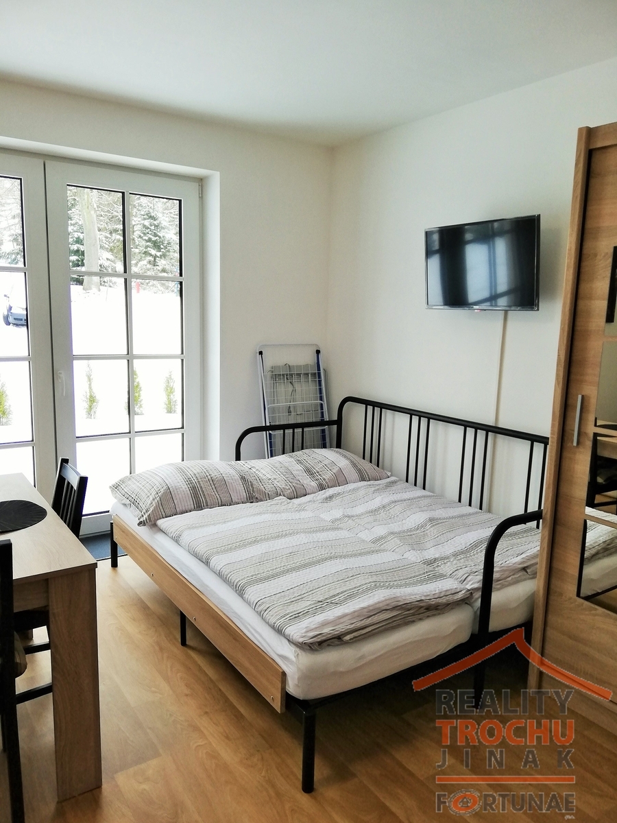 Nabízíme k prodeji moderní plně vybavený byt 1+kk o celkové užitné ploše 32 m2, s terasou 16 m2, nacházející se v obci Říčky v Orlických horách, okres Rychnov nad Kněžnou. Tento cihlový objekt, jehož stav je velmi dobrý, se rozprostírá na třech podlažích, přičemž tento apartmán se nachází v prvním podlaží. V bytě je položena vinylová podlaha a koupelna se sprchovým koutem je obložena moderní dlažbou. Plastová okna s trojskly zajišťují skvělou izolaci. Součástí vybavení bytu jsou moderní technologie, včetně podlahového topení (tepelné čerpadlo), které lze ovládat na dálku. Dále jsou k dispozici elektrické venkovní žaluzie a zabezpečovací kódový systém pro vstup do budovy i bytu. IS: veřejný vodovod, kanalizace, elektřina 230 V. Apartmánový dům disponuje společnou zahradou, prádelnou s vlastní skříní pro ukládání lůžkovin a kolárnou/lyžárnou s uzamykatelným vyhřívaným boxem na lyže. Obec Říčky nabízí řadu služeb a aktivit, včetně menšího obchůdku s potravinami a zastávky autobusu/skibusu hned před domem. Nachází se zde také restaurace, wellness a možnosti sportovních aktivit, jako jsou tenisový kurt, mini golf a skicentrum Říčky, které je vzdáleno pouze 4 km. Pro milovníky cyklistiky je v blízkosti také bikepark a lanový park. Golfové hřiště Nebeská Rybná je vzdálené 4 km. Tento moderní a dobře vybavený byt v malebném prostředí Orlických hor jistě osloví každého, kdo hledá komfortní bydlení nebo rekreační záležitost v přírodě. Je vhodný pro celoroční rekreační využití nebo jako investice s možností pronájmu. Náš úvěrový specialista Vám připraví nabídku financování podle Vašich představ. V případě zájmu o prohlídku nás neváhejte kontaktovat.