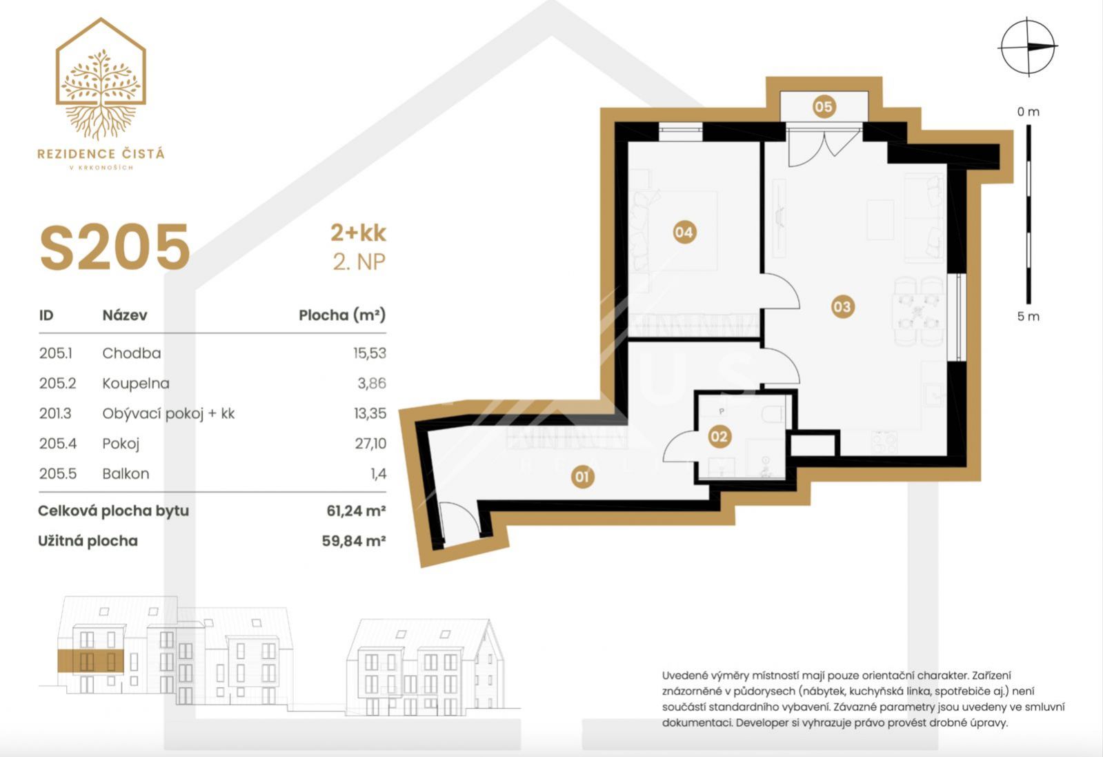 Nabízíme k prodeji moderní apartmán o dispozici 2+kk v komorním developerském projektu Rezidence Čistá - Černý Důl, umístěném v klidné horské lokalitě Krkonoš. Projekt je ideální volbou jak pro vlastní rekreaci, tak pro investiční využití s možností atraktivního pronájmu. Základní informace o apartmánu Dispozice: 2+kk Celková plocha: 61,24 m Podlaží: 2. NP Balkon: ano 1,4 m Stav: novostavba Parkování: možnost dokoupení garážového stání Apartmán nabízí praktické dispoziční řešení s oddělenou ložnicí, prostorným obývacím pokojem s kuchyňským koutem a dostatkem úložného prostoru. Velkorysé prosklení zajišťuje dostatek denního světla a příjemnou atmosféru horského bydlení. Cenové rozpětí apartmánů 2+kk v projektu V projektu jsou k dispozici také další apartmány o dispozici 2+kk v cenovém rozpětí přibližně od 7,5 mil. Kč do 9,5 mil. Kč včetně DPH, v závislosti na velikosti, orientaci a umístění jednotky. Aktuální nabídku, půdorysy a detailní ceny naleznete na oficiálních webových stránkách projektu. Lokalita Rezidence se nachází v atraktivní části Krkonoš, v blízkosti Černého Dolu, Janských Lázní a Mladých Buků, s výbornou dostupností lyžařských areálů, běžkařských tras, turistiky i cyklistiky. Lokalita zaručuje klid, soukromí a dlouhodobou hodnotu nemovitosti. Investiční potenciál Apartmány 2+kk patří mezi nejžádanější dispozice pro rekreační i krátkodobé pronájmy. Kombinace kvalitní novostavby, horské lokality a omezeného počtu jednotek představuje stabilní a perspektivní investici. Pro více informací nebo sjednání osobní prohlídky mě neváhejte kontaktovat. <a href="https://www.eurobydleni.cz/byty/4_kk/ceske-budejovice/obec-ceske-budejovice/prodej/"><strong>Prodej bytu 4+kk České Budějovice</strong></a>