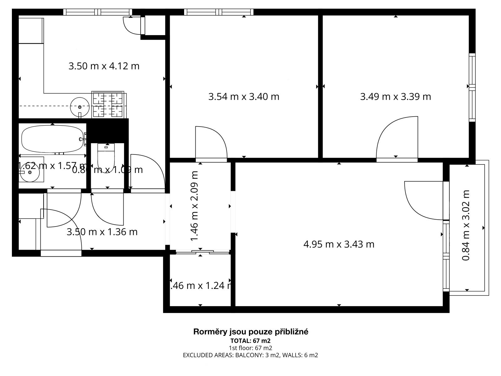 Zrekonstruovaný byt 3+1 v Hradci Králové, ulice Pod Zámečkem